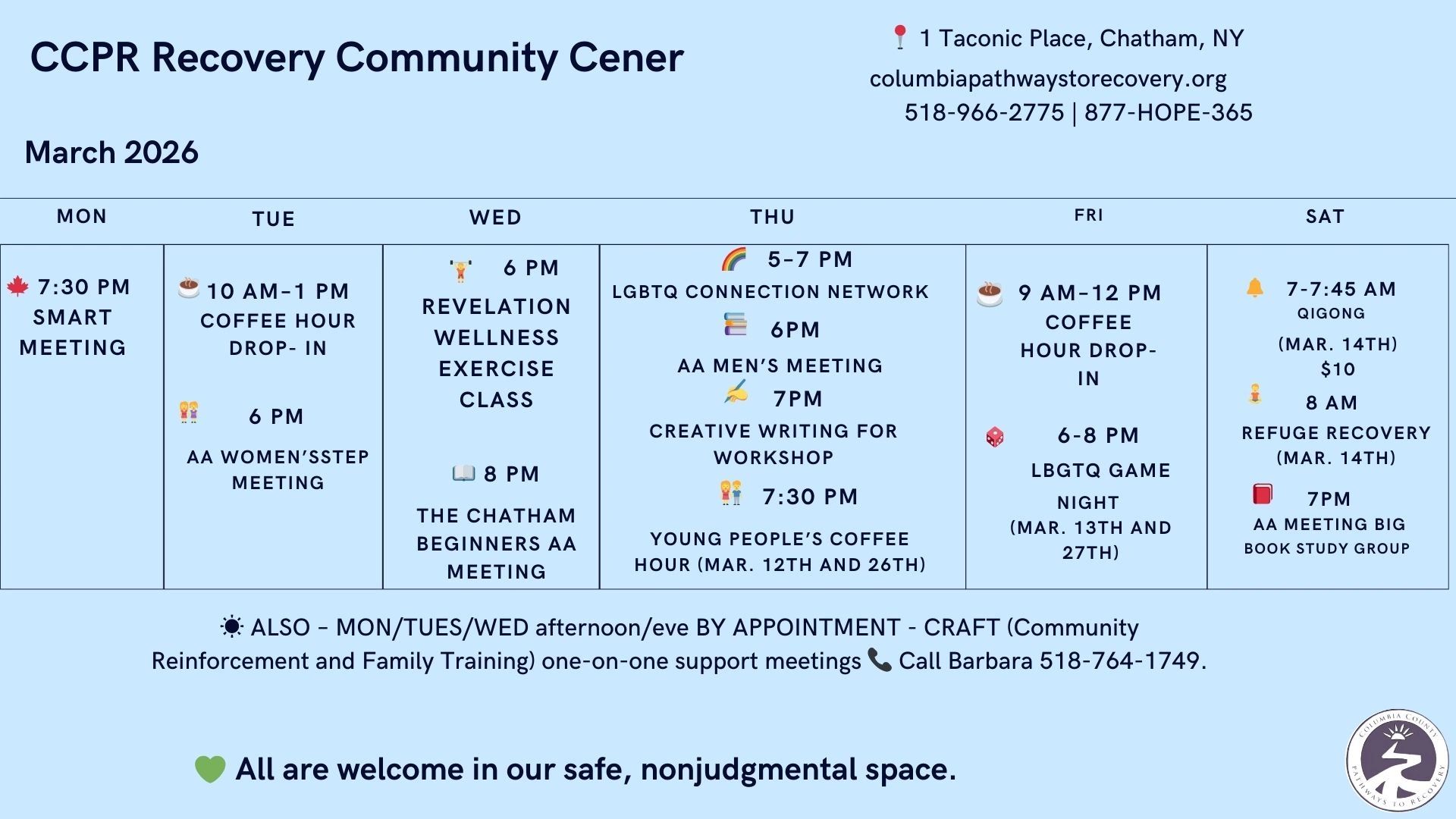 Columbia County's Only Recovery Community OrganizationColumbia County's Only Recovery Community OrganizationColumbia County's Only Recovery Community Organization